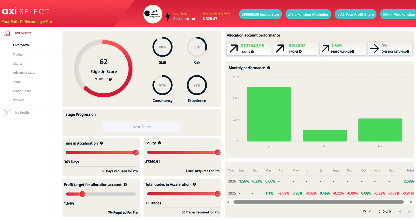 คุณไม่จำเป็นต้องทำกำไร 100% ด้วยความเสี่ยงสูง… คุณแค่ต้องทำกำไร 12% ที่ “น่าเบื่อ” และ “น่าเชื่อถือ” พอที่ Axi จะกล้าให้ทุนคุณต่างหาก