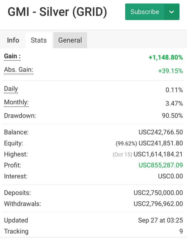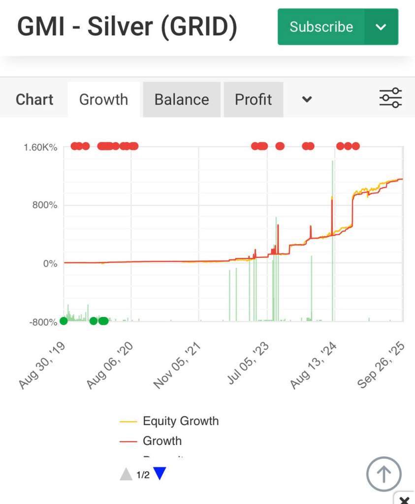 (ภาพประกอบ: ผลตอบแทนพอร์ตจริง GMI – Silver GRID อ้างอิงจาก Myfxbook)