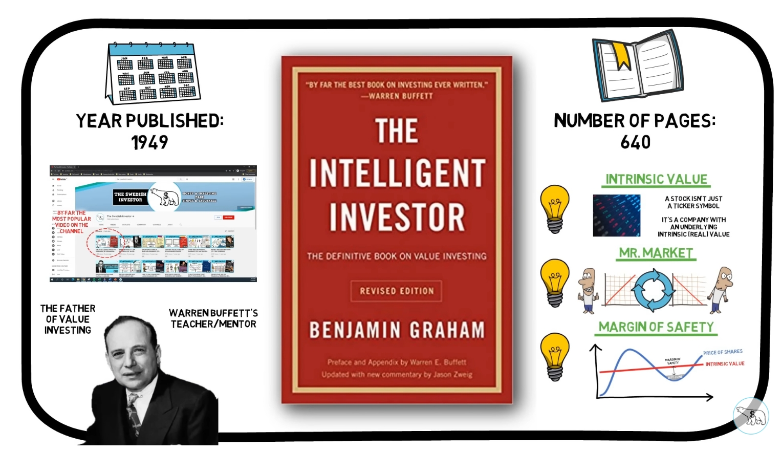 บิดาแห่ง Value Investing เขียนเล่มนี้เพื่อเตือนสติและสร้างภูมิคุ้มกันให้เรา หากคุณเข้าใจ 3 คำนี้: Mr. Market, Intrinsic Value, Margin of Safety คุณจะไม่มีวันหมดตัวในตลาดหุ้น