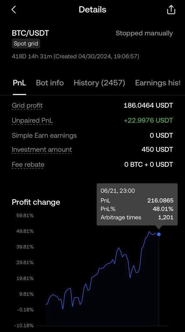 แต่สำหรับ Spot Grid เราใช้เงินสดซื้อสินทรัพย์จริง “เราเป็นเจ้าของ 100%” ✅ ไม่มีการกู้ยืม = ไม่เสียดอกเบี้ย ✅ รัน Bot เป็นปี = ฟรีค่าธรรมเนียมการถือ!