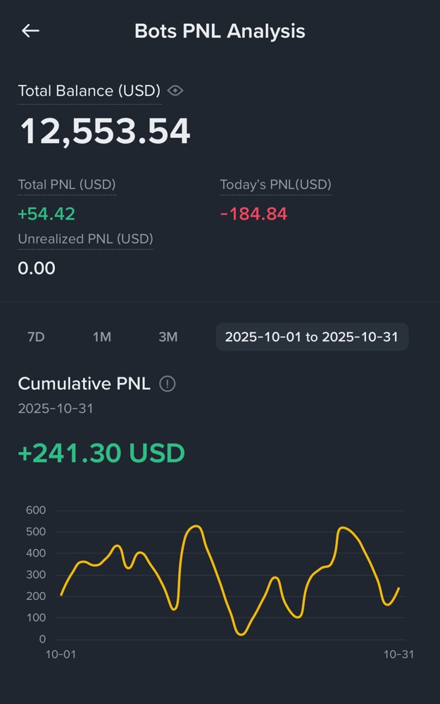 นี่คือรายงานผลประกอบการ 2 เดือนล่าสุดของ ‘ทีม Daddy Bot’: ✅ เดือนกันยายน: ทำ Cash Flow ได้ +$334.27 USD (ประมาณ 1 หมื่นบาท) ✅ เดือนตุลาคม: ทำ Cash Flow ได้ +$241.30 USD (ประมาณ 8 พันบาท)