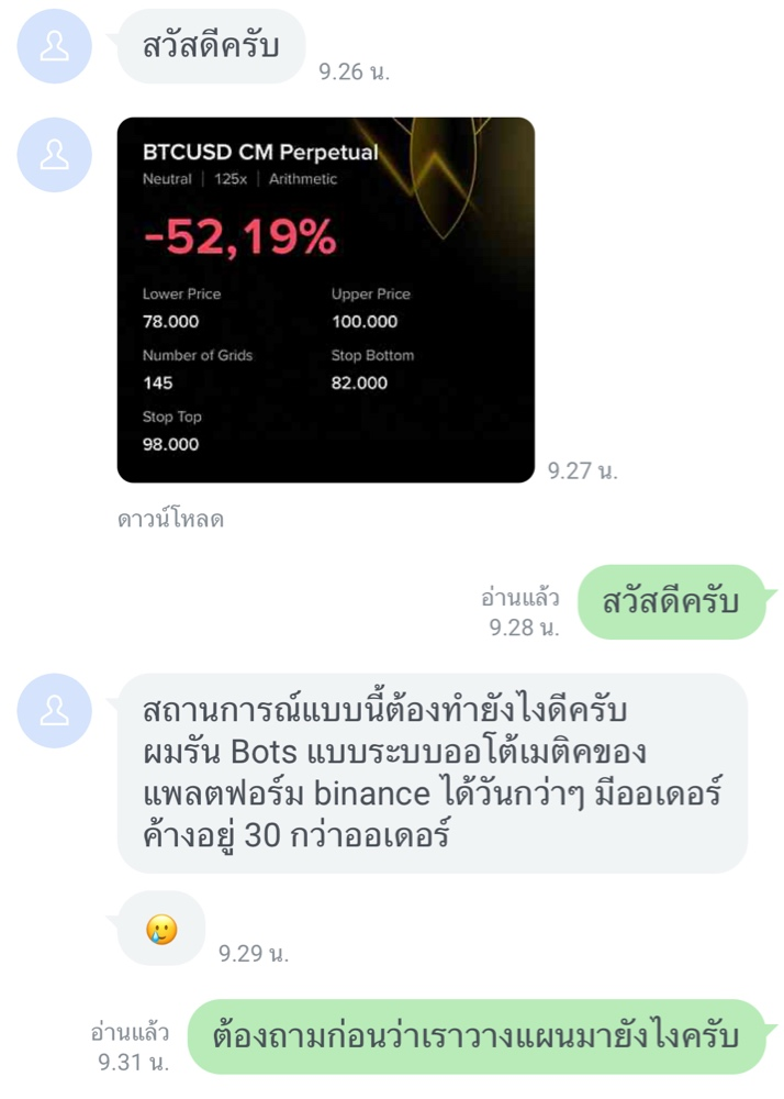 ตลาดสินทรัพย์ดิจิทัลมีความผันผวนสูง ผลลัพธ์ของการทำ Grid Trading อาจแตกต่างกันไปตามสภาวะตลาด, เหรียญที่เลือก, และช่วงเวลาที่เริ่มรันบอท ผู้ลงทุนควรทำความเข้าใจความเสี่ยงและมีแผนการบริหารเงินทุน (Money Management) ที่เหมาะสมก่อนตัดสินใจลงทุน